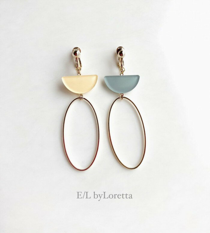 Color half circle oval hoop pierce/earring(Yellow×Green) E/L byLoretta EL エルバイロレッタ accessory アクセサリー ハーフサークル 半円 フープ イエロー グリーン ミント 14kgfフック ねじ式 クリップ式 ピアス イヤリング 両耳セット ハンドメイド