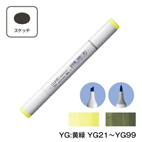 COPIC コピックスケッチ YG Yellow Green (黄緑) 単品 単色【1本】 YG21 YG23 YG25 YG41 YG45 YG61 YG63 YG67 YG91 YG93 YG95 YG97 YG99 コピック スケッチ マーカー ペン スケッチ 重ね塗り スーパーブラシ インク補充可能 ニブ交換可能 黄色 緑 イエロー グリーン