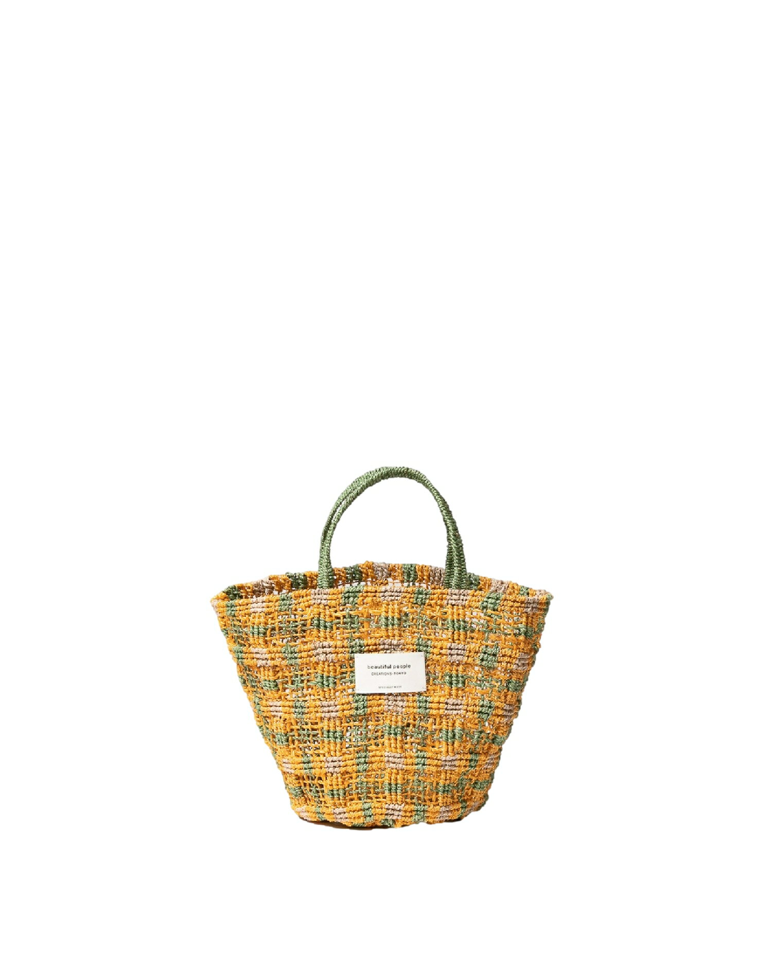 【正規取扱店】beautiful people abaca knitting small tote bag yellow×green (ビューティフルピープル)