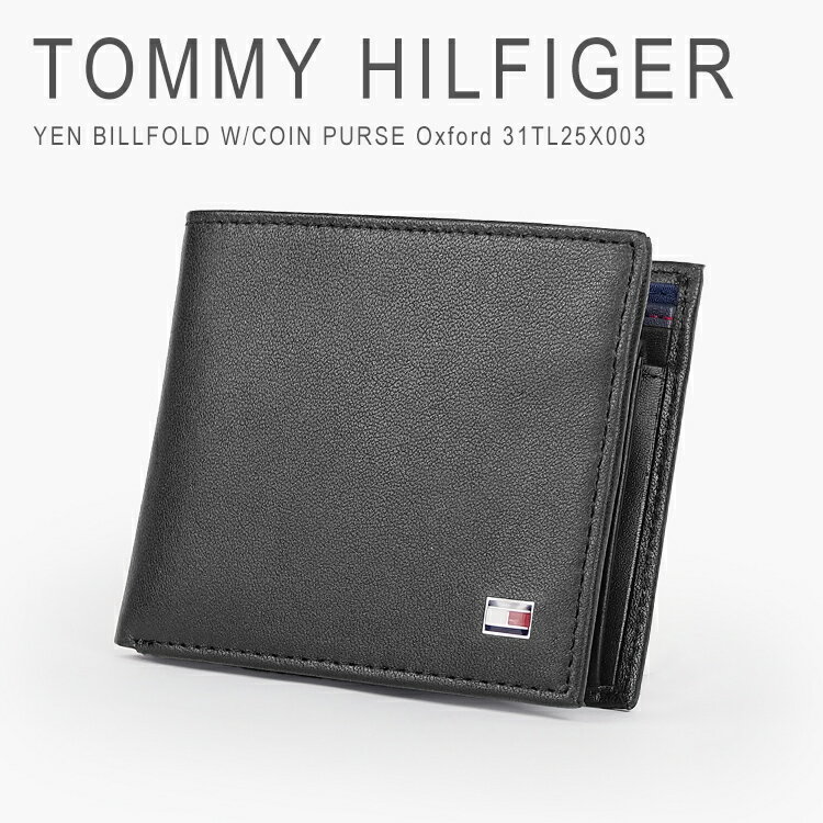 【10%OFFクーポン対象★期間限定】トミーヒルフィガー 財布 メンズ 二つ折り 本革 ブランド 二つ折り財布 小銭入れ付き レザー ビジネス クリスマス クリスマスプレゼント TOMMY HILFIGER YEN BILLFOLD W/COIN PURSE BLACK Oxford 31TL25X003 メール便送料無料 [M便 1/1]