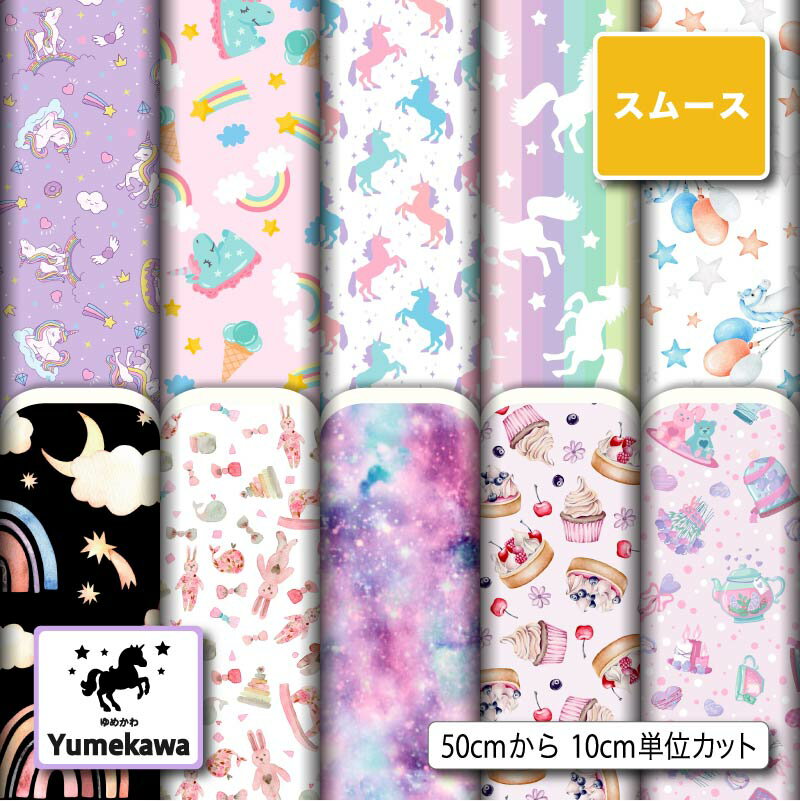 スムースニット生地 布 かわいい ゆめかわ柄 ストレッチ 商用利用可 ハンドメイド 手作り 手芸 洋服 スヌード ストール 衣装 コスチューム マスク (yume_1)