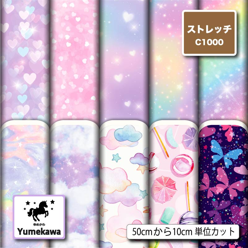 ストレッチニット生地 布 かわいい C1000 ゆめかわ柄 かわいい 軽量 UPF50+ 防透性 吸水速乾 耐塩素 商用利用可 ハンドメイド 手作り 手芸 犬服 水着 レオタード ラッシュガード スポーツウェア (yume_2)