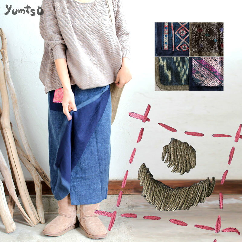 【Yumtso】配色&異素材のラップスカート!ナチュラル/コットン/エスニック/レディース スカート