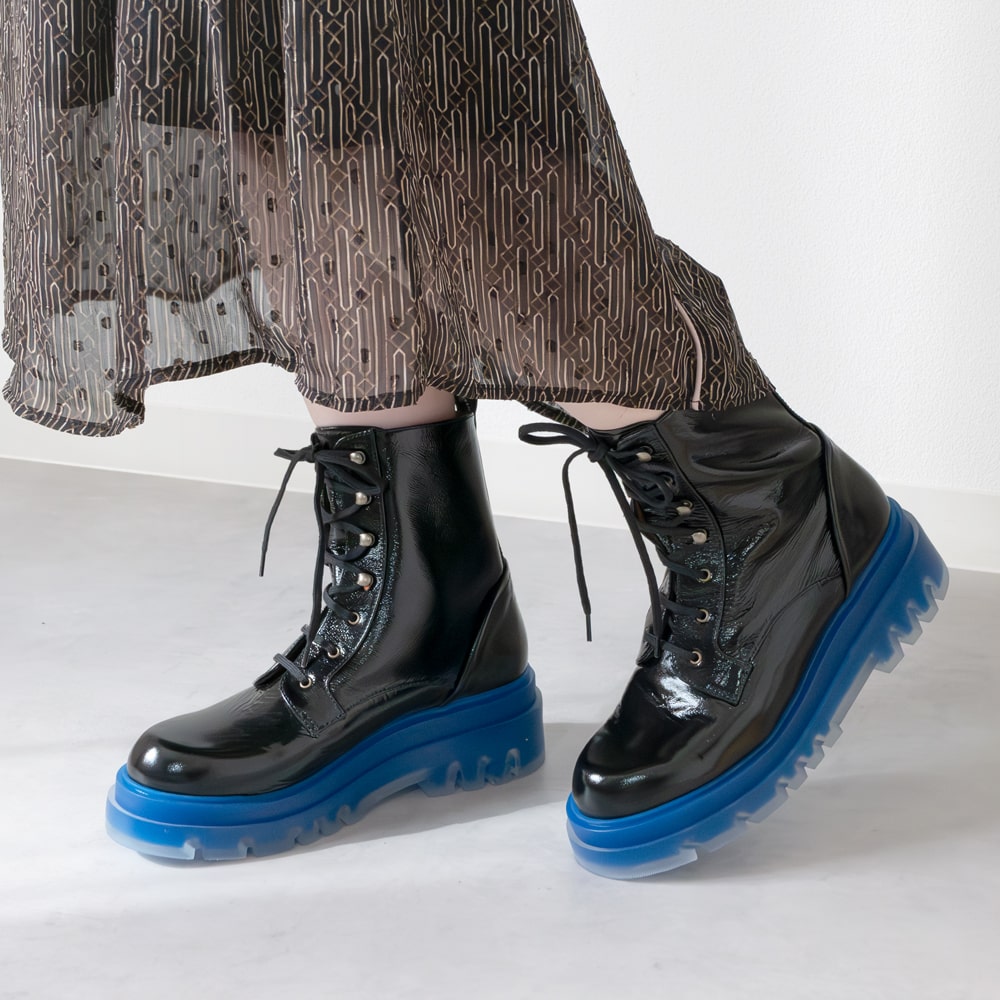 CHIE MIHARA [チエミハラ]クリアソールレースアップショートブーツ5A YUPPIE NEGRO ブラック本革 / インポート / 厚底 / ダッドソール / レザー / スペイン / エナメル /
