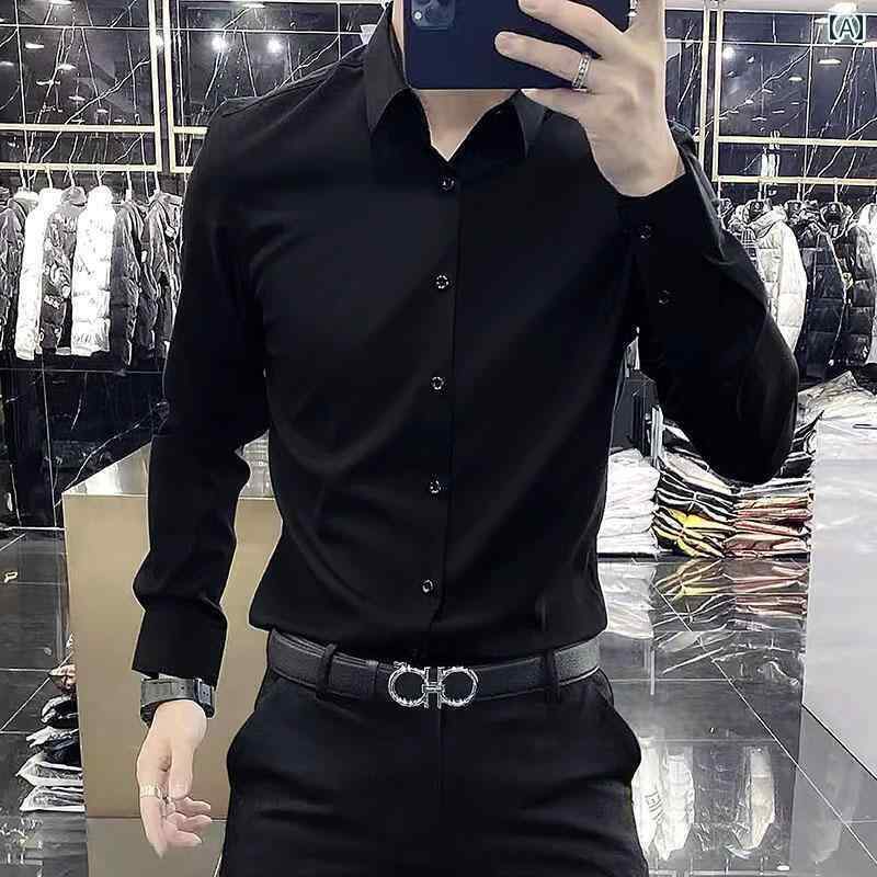 メンズ 長袖 シャツ Yuppie ハイエンドノー アイロン カジュアル ビジネス ドレープ スリム ストレッチシャツ 秋 長袖 無地 シャツ 男性用