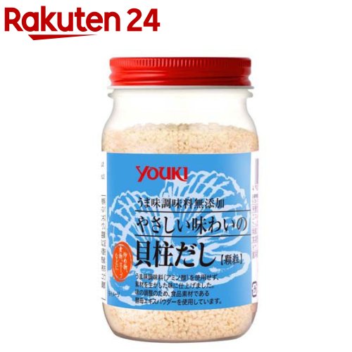 お店TOP>フード>調味料・油>中華調味料>中華だし>ユウキ食品 やさしい味わいの貝柱だし (110g)【ユウキ食品 やさしい味わいの貝柱だしの商品詳細】●滋味豊かな干し貝柱の旨みが広がり、素材の味が引き立つやさしい味わいの顆粒だしです。●スープベース…水200ml : 本品小さじ2。●中華粥…ご飯200g 水200ml : 本品小さじ2。(※小さじ1は約2.5g)【品名・名称】貝柱だし(調味料)【ユウキ食品 やさしい味わいの貝柱だしの原材料】食塩(国内製造)、ほたてエキスパウダー、砂糖、煮干貝柱、酵母エキスパウダー、粉末醤油/加工デンプン、(一部に小麦・大豆を含む)【栄養成分】小さじ1(2.5g)あたりエネルギー:6kcal、たんぱく質:0.2g、脂質:0g、炭水化物:1.4g、食塩相当量:0.8g【アレルギー物質】小麦、大豆【保存方法】直射日光・高温多湿をさけて保存してください。【注意事項】開封後は密閉して保存し、なるべく早めにご使用ください。【原産国】日本【発売元、製造元、輸入元又は販売元】ユウキ食品リニューアルに伴い、パッケージ・内容等予告なく変更する場合がございます。予めご了承ください。ユウキ食品182-0033 東京都調布市富士見町1-2-20120-69-5321広告文責:楽天グループ株式会社電話:050-5577-5043[調味料]