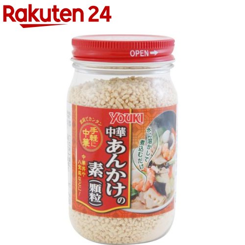 お店TOP>フード>料理の素・パスタソース>料理の素>中華料理の素>ユウキ 中華あんかけの素 顆粒 (110g)【ユウキ 中華あんかけの素 顆粒の商品詳細】●水に溶かして煮込むだけで、あんかけが簡単に作れる顆粒状だしの素です。●チキンと野菜のうまみをバランスよく合わせ、コクと深みを出しました。【召し上がり方】使用目安(1人分)具材250g、水150ml、本品15g(大さじ2強)フライパンで具材を炒め、水に溶かした本品を加え、とろみがつくまで煮込んで出来上がり。【品名・名称】中華あんかけの素(調味料)【ユウキ 中華あんかけの素 顆粒の原材料】でん粉(国内製造)、砂糖、食塩、チキンエキスパウダー、粉末醤油、ビーフエキスパウダー、野菜エキスパウダー、生姜粉末、にんにく粉末、胡椒/調味料(アミノ酸等)、(一部に小麦・牛肉・大豆・鶏肉・豚肉を含む)【栄養成分】100g当たりエネルギー:305kcal、たんぱく質:5.3g、脂質:1.2g、炭水化物:68.2g、食塩相当量:23.6g【アレルギー物質】小麦、牛肉、大豆、鶏肉、豚肉【保存方法】直射日光・高温多湿をさけて保存してください。【原産国】日本【ブランド】ユウキ食品(youki)【発売元、製造元、輸入元又は販売元】ユウキ食品リニューアルに伴い、パッケージ・内容等予告なく変更する場合がございます。予めご了承ください。ユウキ食品182-0033 東京都調布市富士見町1-2-20120-69-5321広告文責:楽天グループ株式会社電話:050-5577-5043[調味料/ブランド:ユウキ食品(youki)/]