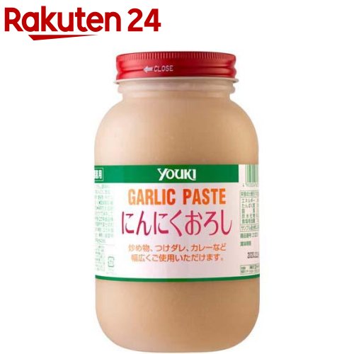 お店TOP>フード>調味料・油>にんにく・生姜>おろしにんにく>ユウキ食品 業務用 にんにくおろし (1kg)【ユウキ食品 業務用 にんにくおろしの商品詳細】●おろしタイプなので、そのままつけダレに使用できます。●炒め物、カレーなど幅広くご使用いただけます。【召し上がり方】炒め物、つけダレ、カレーなどに。【品名・名称】にんにくおろし(調味料)【ユウキ食品 業務用 にんにくおろしの原材料】乾燥にんにく(にんにく(中国))、食塩/酒精、pH調整剤、増粘剤(キサンタン)【栄養成分】100g当たりエネルギー:89kcal、たんぱく質:3.8g、脂質:0.1g、炭水化物:18.2g、食塩相当量:7.4g【保存方法】直射日光・高温多湿をさけて保存してください。【注意事項】・茶色っぽいものが入っている場合がありますが、これはにんにくの一部(芽)であり、品質には問題ありません。・時間の経過とともに色が濃くなる傾向にありますが、品質には問題ありません。・開封後要冷蔵(10度以下)・内容物が、容器やキャップのネジ口部分に付着し、キャップが開きづらくなることがありますので、きれいに拭取ってからお締めください。【原産国】日本【ブランド】ユウキ食品(youki)【発売元、製造元、輸入元又は販売元】ユウキ食品リニューアルに伴い、パッケージ・内容等予告なく変更する場合がございます。予めご了承ください。(YOUKI)ユウキ食品182-0033 東京都調布市富士見町1-2-20120-69-5321広告文責:楽天グループ株式会社電話:050-5577-5043[調味料/ブランド:ユウキ食品(youki)/]