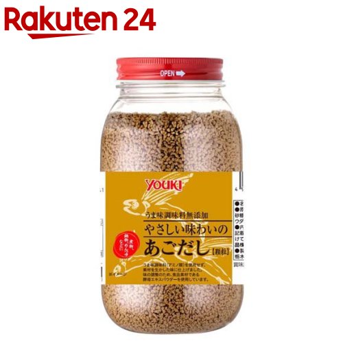 お店TOP>フード>調味料・油>中華調味料>中華だし>ユウキ食品 やさしい味わいのあごだし (400g)【ユウキ食品 やさしい味わいのあごだしの商品詳細】●あご(とびうお)やかつおがベースのやさしい味わいの顆粒だしです。●だし汁…水200ml : 本品小さじ1。●茶碗蒸し…卵1個 水150ml : 本品小さじ1.5。(※小さじ1は約2.5g)【品名・名称】あごだしの素【ユウキ食品 やさしい味わいのあごだしの原材料】食塩(国内製造)、焼きあご粉末、砂糖、かつおぶし粉末、かつおぶしエキスパウダー、酵母エキスパウダー/加工デンプン【栄養成分】小さじ1(2.5g)あたりエネルギー:5kcal、たんぱく質:0.4g、脂質:0.03g、炭水化物:0.9g、食塩相当量:1.1g【アレルギー物質】記載なし【保存方法】直射日光・高温多湿をさけて保存してください。【注意事項】開封後は密閉して保存し、なるべく早めにご使用ください。【原産国】日本【発売元、製造元、輸入元又は販売元】ユウキ食品リニューアルに伴い、パッケージ・内容等予告なく変更する場合がございます。予めご了承ください。ユウキ食品182-0033 東京都調布市富士見町1-2-20120-69-5321広告文責:楽天グループ株式会社電話:050-5577-5043[調味料]