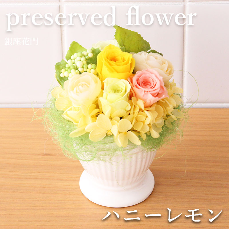 花 ギフト 誕生日 銀座花門 プリザーブドフラワー 〜 プリザ 銀座 〜『ハニーレモン』 送料無料 バラ お花 フラワー プレゼント フラワーギフト ブリザード お祝い 退職祝い 結婚祝い 電報 メッセージカード 女性 男性 送別会 送別 おしゃれ