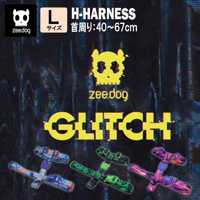 zee.dog ジードッグ ハーネス 大型犬 超大型犬 Lサイズ いぬ ペット お散歩 ワンタッチ おしゃれ 可愛い カラフル カラー豊富 丈夫 Hハーネス スカル ラブラドールレトリーバー ゴールデンレトリーバー ハスキー Glitch Collection