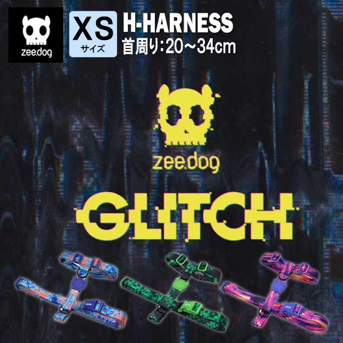 zee.dog ジードッグ ハーネス 超小型犬 小型犬 子犬 いぬ ペット XSサイズ お散歩 ワンタッチ おしゃれ 可愛い カラフル カラー豊富 丈夫 Hハーネス スカル チワワ トイプードル マルチーズ ポメラニアン Glitch Collection