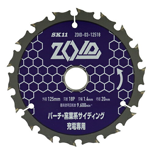 【ポイント5倍 11/20 20:00〜11/27 01:59まで】SK11 充電丸鋸 チップソー ZOID パーチ 窯業系サイディング用 125mm× 18P ZOID-03-12518 藤原産業 fwsg