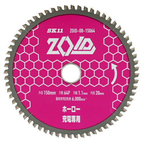◆藤原産業 SK11 充電丸鋸 チップソー ZOID ホーロー用 150mm× 64P ZOID-08-15064