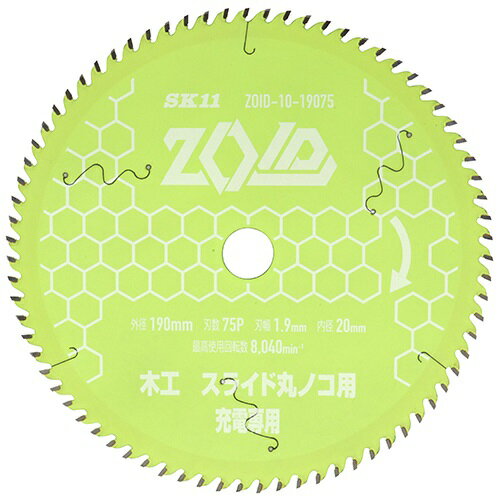 SK11 ZOID チップソー スライド用 ZOID-10-19075 外径190mm 刃幅1.9mm 穴径20mm 刃数75P メール便 藤原産業