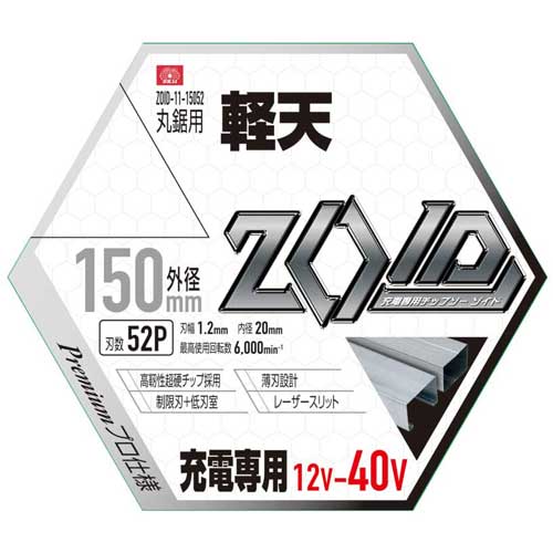 【特長】 ●充電丸鋸12~40V専用です ●高硬度超硬は超硬に比べ超耐久2倍を実現しました ●最適刃数で薄物の切断もきれいです ●薄刃設計で切削抵抗を軽減し振動を抑制します ●レーザースリットで振動を抑制し騒音を大幅軽減します 【用途】 ●充電丸鋸等を使用して軽天材の切断 【仕様】 ●外径:150mm ●刃数:52P ●刃幅:1.2mm ●内径:20mm ●最高使用回転数:6000min-1 ●サイズ:幅150 ×高さ1.5 ×奥行き150mm ●重量:140g 【納期】 メーカーに在庫があれば、納期約3〜4日(営業日)で出荷いたします。 画像clickで各商品販売ページに進みます ZOIDチップソー 軽天用 ZOID-11-12542 ZOID-11-15052 ZOID-11-16556 ZOID-11-18560