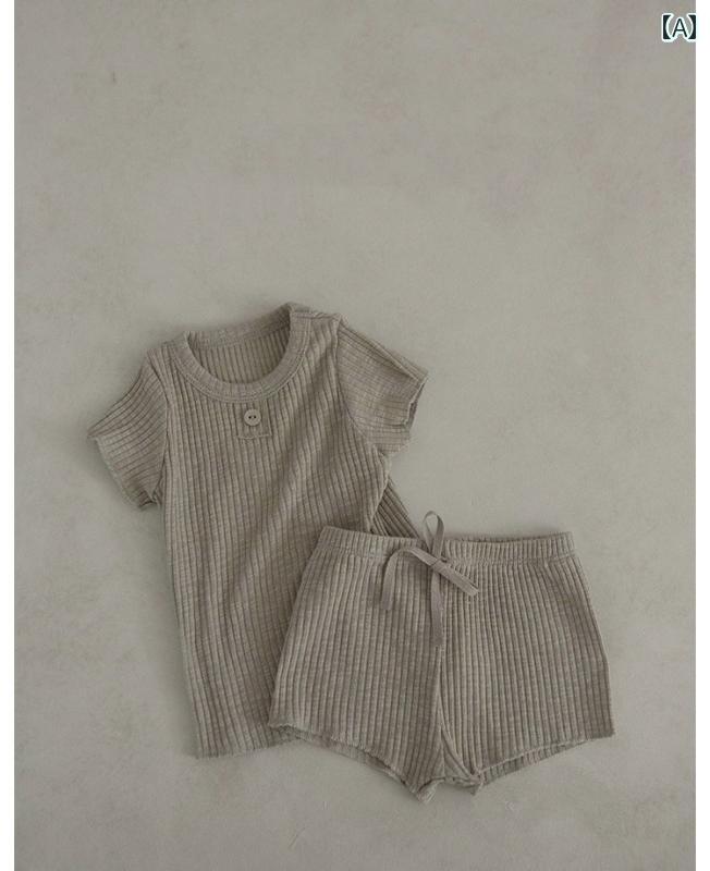 ベビー服 半袖 快適 韓国 夏の 半袖 コットン Tシャツ ショート パンツ 男の子と 女の子 ツーピース ベビー 無地 カジュアル ホーム 服 スーツ
