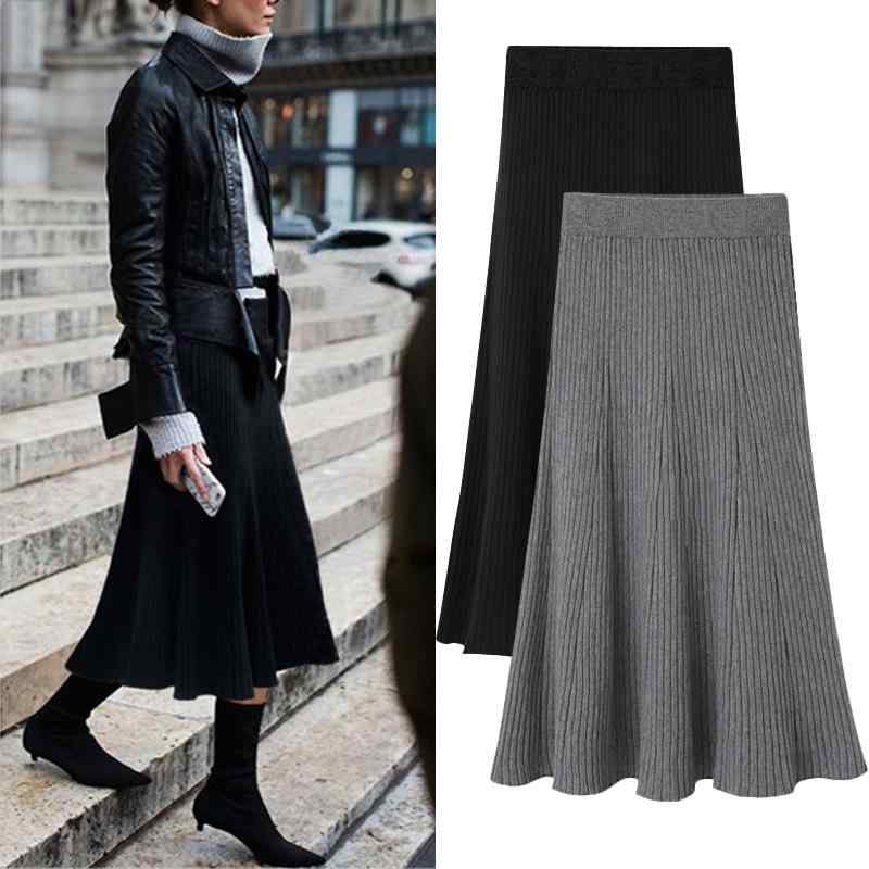 プリーツスカート レディース 秋冬 ニット ハイウエスト ミディ丈 厚手 大きいサイズ 体型カバー 着痩せ ストレッチ 無地 アクリル 大人カジュアル デイリーユース