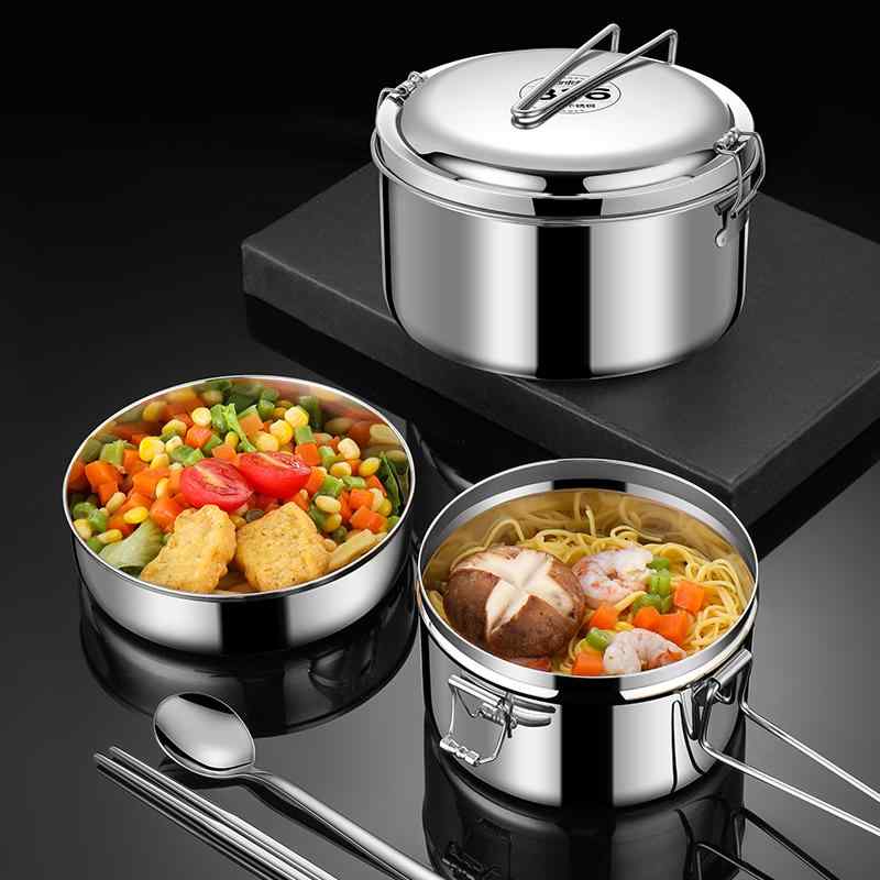 弁当箱 304ステンレス製 円形 仕切り 二段 大容量 学生 会社員 通勤 オフィスランチ 普段使い 丈夫 衛生的 持ち運び便利 洗いやすい