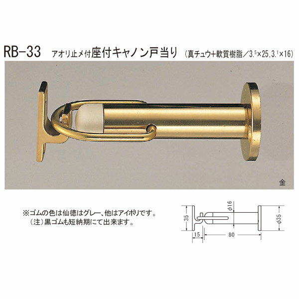 ◇シロクマ SHIROKUMA 白熊◇キャノン戸当たり アオリ止メ付 サイズ90 Φ16 真チュウ+軟質樹脂 全5色 ドアストッパー 戸当り 戸あたり[RB-130] rb130(数量:1)