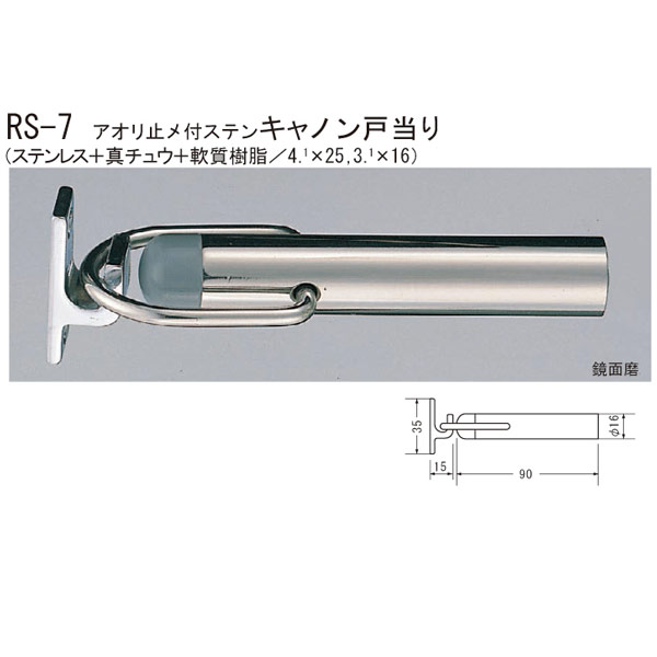 シロクマ アオリ止メ付ステンキャノン戸当り(ステンレス+真チュウ+軟質樹脂/4.1×25,3.1×16) RS-7 90mm