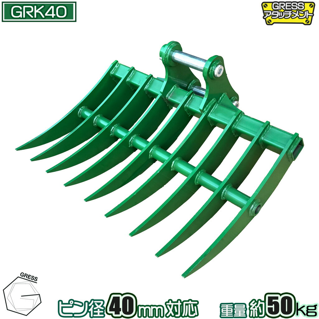 アタッチメント レーキ ワイドバケット コマツ ヤンマー 日立 クボタ コベルコ IHI 三菱 CAT ユンボ 重機 建機 ショベル 熊手 ふるい分け 整地 集草 アタッチ バケット グラップル パワーショベル 油圧ショベル バックホー ピン径40mm 3.0-3.5トン対応 GRESS GRK-40