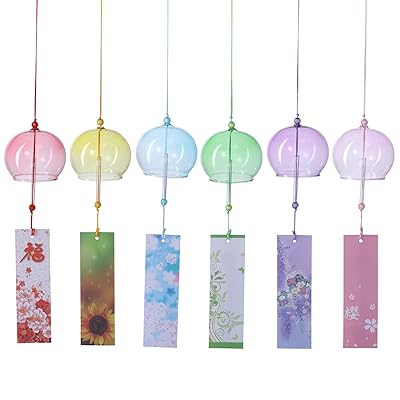風鈴 手作り風鈴 ガラス風鈴 江戸風鈴 癒しの音 和風 涼しい感じ 夏の風物 涼を楽しむ おしゃれ インテリア 飾り物 雰囲気作り 吊り飾り 屋根飾り おみやげ 祝福 贈り物 2種セット ((レット+イエロー+ブルー+グリーン+パープル+ピンク)6個