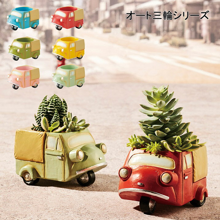 ミニミニレジンポット オート三輪 1号鉢 1号ポット 多肉植物 プリザーブドフラワー ピンクッション 印鑑入れ かわいい グレー グリーン レッド ブルー ピンク イエロー 車 昭和レトロ ミニポット フラワーアレンジメント 花器 コンポート