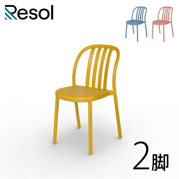 ガーデンチェア セット おしゃれ スタッキング可能 「Resol Sue リソル スー チェア 2脚セット」 座面高45.5cm 高さ80cm レトロブルー/テラコッタ(ピンク)/トスカーナ(イエロー) 樹脂製