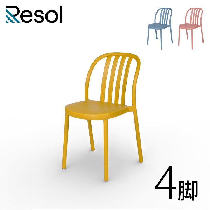 カフェチェア おしゃれ 屋外 スタッキング 「Resol Sue リソル スー チェア 4脚セット」 座面高45.5cm 高さ80cm レトロブルー/テラコッタ(ピンク)/トスカーナ(イエロー) 樹脂製