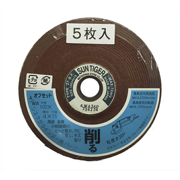 SUN TIGER(サンタイガー) オフセット砥石サンタイガー5枚入り 36P 100×4×15 金属用