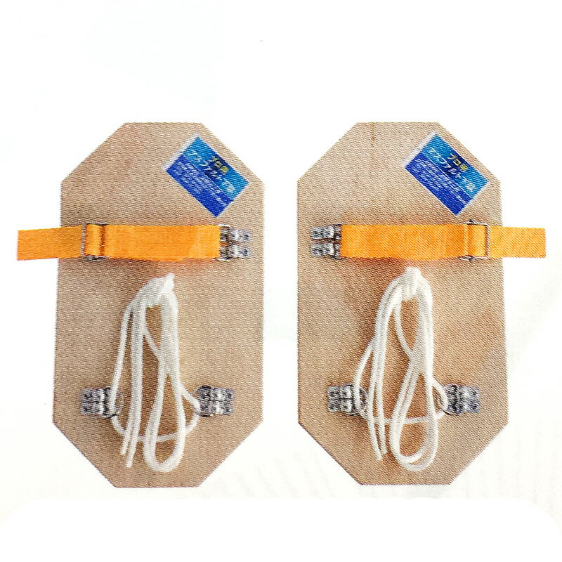 雪歩きには昔ながらのかんじきが一番!特徴雪道の歩行や歩道の道ならし、雪上ウォーキングに使える。金属スパイクつきで凍った雪道もすいすい歩ける。ワンタッチナイロンベルトで調整が簡単です。足がズレない。歩きやすい長方形。合計11個のスパイクで滑りにくい。仕様適合サイズ(cm):靴底の全長が約30cmまでサイズ:380×170mm重量:275g(一個)材質:ポリプロピレン、[ベルト]ナイロン