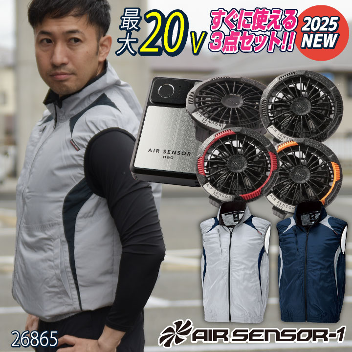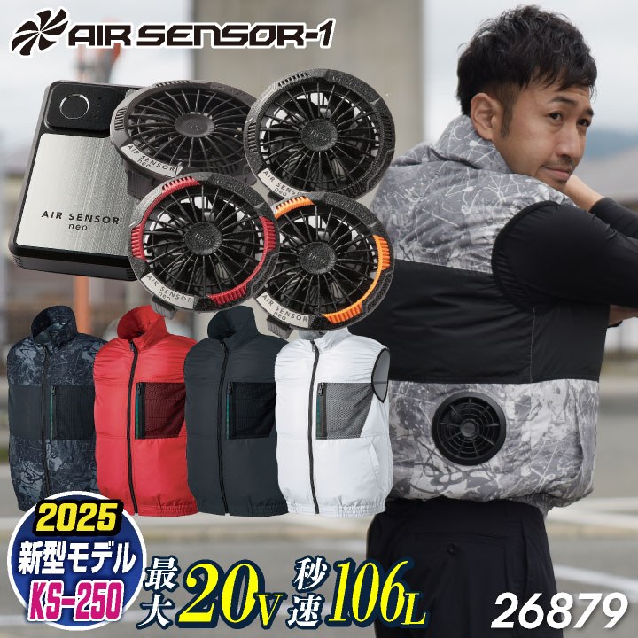 クロダルマ ファン・バッテリーフルセット ベスト ファン付き作業着 作業服 春夏 空調作業服 空調ウェア 涼しい ファンユニット バッテリ 大きいサイズ メンズ レディース エアセンサー1 [26865+KS-250] kd-26865-l3
