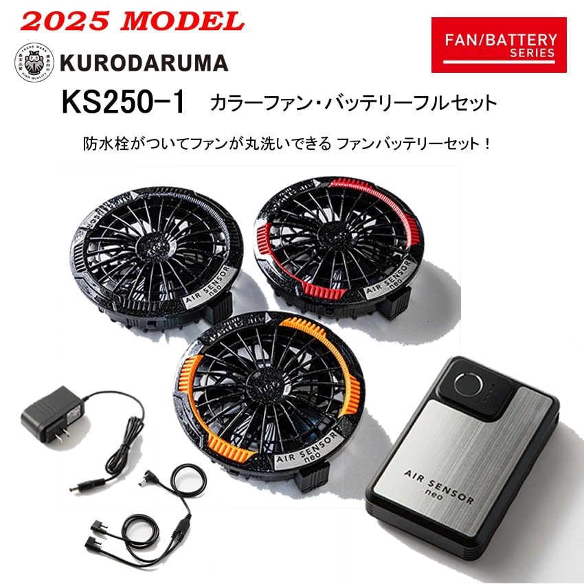 【即日発送】洗えるファン【2025年NEW】ファン ・バッテリーセット 電動ファン対応 熱中症対策 20V仕様 薄型ファン 静音 急速充電仕様 エアセンサー クロダルマ KS-250-1