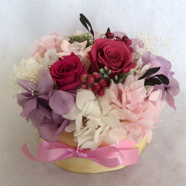 *お届けの際には ギフト使用にラッピングいたします。 *金額の分かる明細書は お付けいたしません。 *追加メッセージも承っております。 *ご購入お手続きの際 お届けのご希望の欄にご記載ください。 取り扱いの注意 ・生花を特殊加工してあるため 水やりの必要はありません。 ・湿気を嫌うため 水がお花にかかることのない様ご注意ください。 ・梅雨の時期はできるだけ風通しの良い場所に置いて下さい。 ・保管状況〔埃・光・触圧〕にはご注意下さい。 ・ライト焼け、日焼けをして 色あせることがあります。 ・デリケートなので お花を直接強く触ると 花びらが 切れたり 崩れたりする可能性があります。 ・お花の色が 他のものに 着色する場合がございます。カーテンや 壁などにつけて飾ることのないようご注意下さい。 ・商品の移動等動かすときは、十分にご注意下さい。 約3年はこのままの状態で 楽しんで頂けます。 商品をお届けの際、透明のフィルムにて ラッピングいたします。 そのまま飾って頂いても大丈夫です。 専用の ケース等もご用意しております。 商品には 上記のご注意事項の用紙を 同封させていただきます。 *プリザーブドフラワートップページへ *プリザーブドフラワーケーキのページへ *お届けが北海道、北東北、九州、沖縄のみ追加送料がかかります 商品説明 各種お祝い・記念日・プレゼント 花材 バラ・アジサイ・カーネーション/プリザーブドフラワー パール サイズ 高さ:約7 cm/横約12 cm 大切な方へ贈るお祝いやプレゼントに最適なギフト対応を承ります。 各商品に付いているアイコンの説明は以下の通りです。 ●●●セロファンでのラッピングになります。 詳細 ●●● ●●●商品により カードタイプになる場合があります。 ●●● ●●●商品により カードタイプになる場合があります。 ●●● ●●●御用途に合わせた メッセージカードのご用意があります。 詳細●●● ●●●代筆となります。●●●プリザーブドフラワーで美しさと喜びをいつまでも…