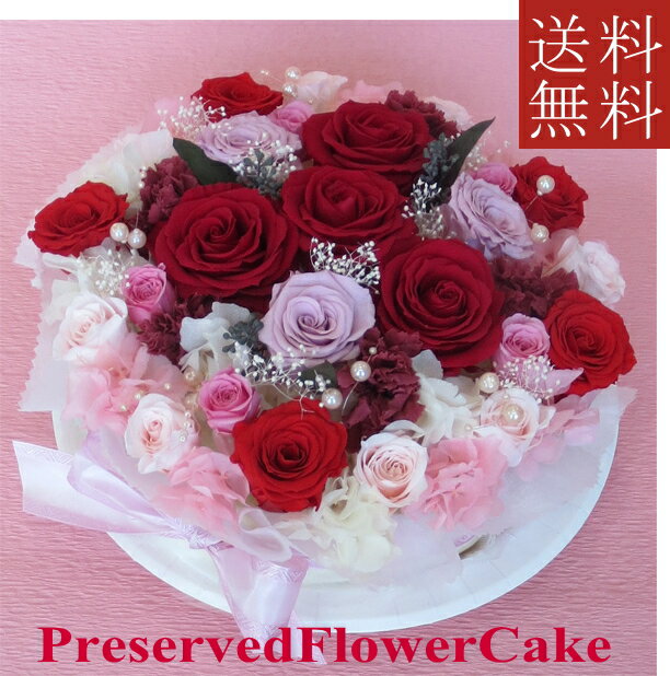 プリザーブドフラワー/豪華なお花のフラワーケーキ ピンク&レッド 誕生日 結婚 記念日 御祝いなど