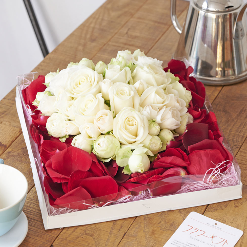 【送料無料】国産バラのフラワーケーキ(ケーキ箱入り)ガトー・オ・フルール・ドゥ・ローズ(ルージュ・エ・ブラン)お祝い お花 生花 アレジメントフラワー 薔薇 ローズ フラワーギフト プレゼント 贈り物 全国配送 即日出荷 メッセージカード無料 楽ギフ あす楽