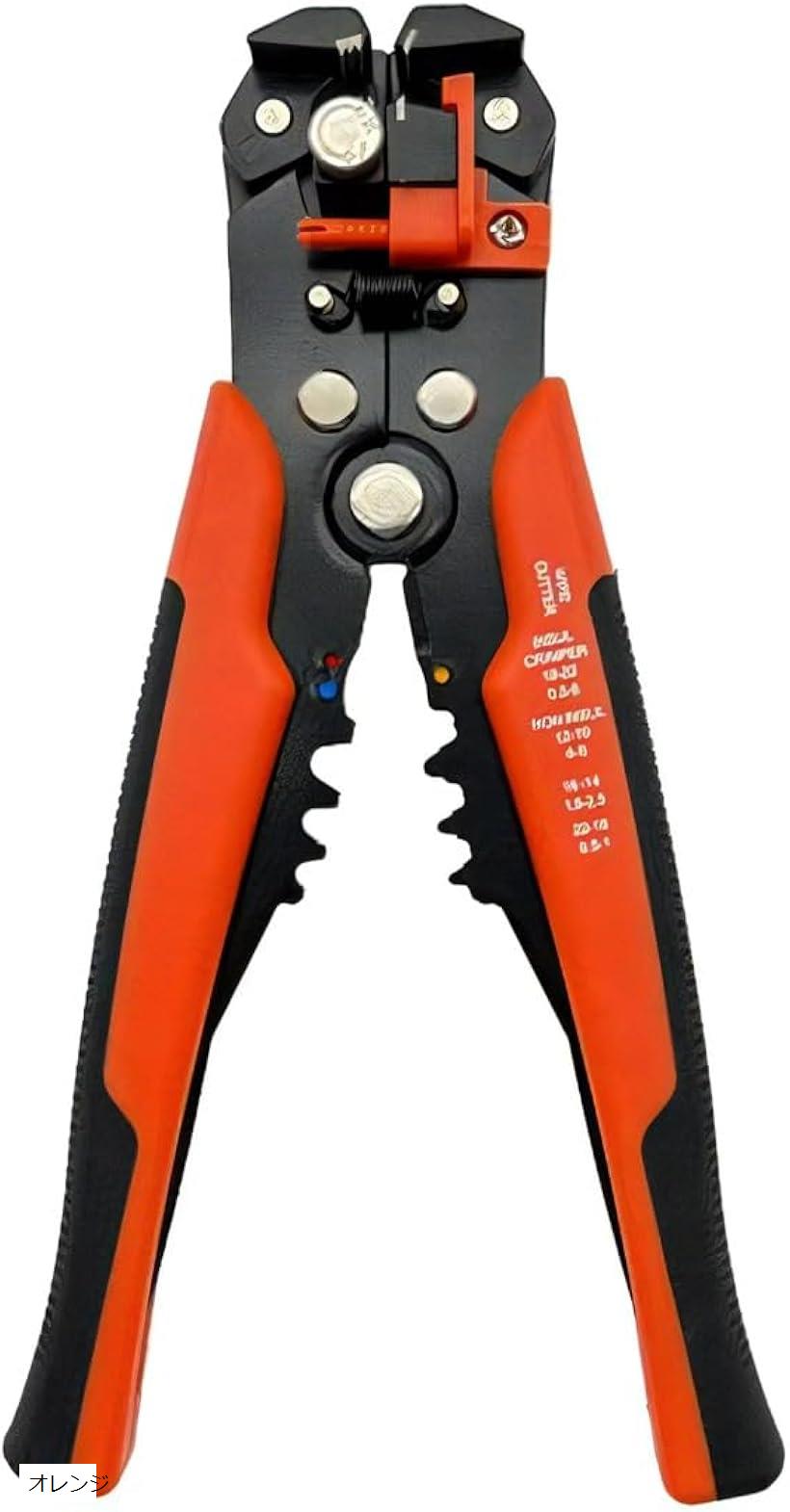 ワイヤーストリッパー ケーブルストリッパー マルチストリッパー 簡易圧着 ワイヤーカット 配線剥き 自動調整 3イン1 多機能 オレンジ