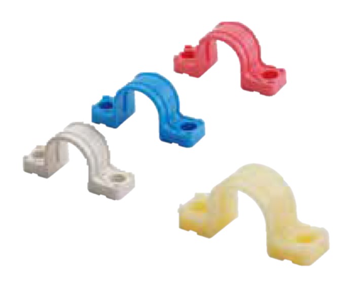 PF管を露出配管する場合の固定に使用します。ビス1本でガッチリ固定できます。サイズ16は仮固定できるビス穴付。適合管:PF管16