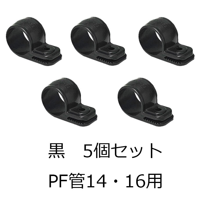 ワニグチ片サドル(兼用タイプ) 14・16用 ブラック 5個入り KTK-16K-5s (PF管 VE管 CD管 未来工業 サドル ktk16k 黒色)