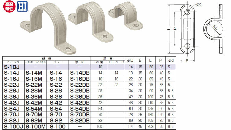 品名:VE両サドル・S−54J(ベージュ) メーカー:未来工業 ●VE管用 適合・・・VE管➡54