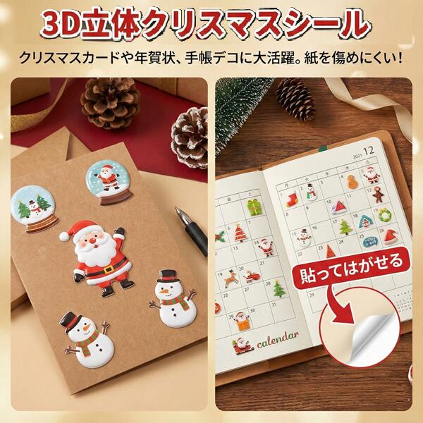 3D クリスマス シール ぷくぷく ステッカー 立体 膨らむ 【豪華セット】 サンタクロース トナカイ 雪だるま ご褒美シール 手帳デコ クリスマスカード作り 飾り付け 子供 プレゼント
