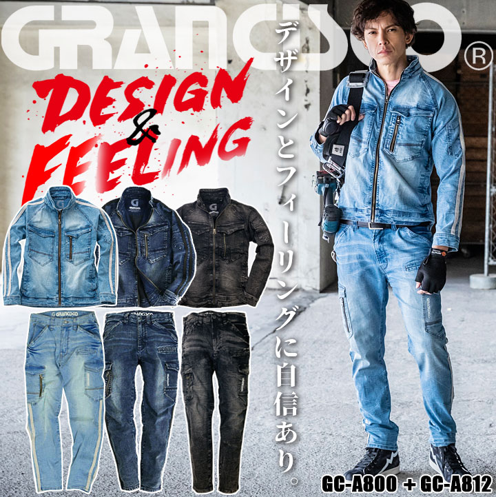 【5%OFFクーポン★11/1限定】【即日発送】作業服 上下セット デニムジャケット&デニムカーゴパンツ ストレッチ スキニー グランシスコ GC-A800 GC-A812【アップデート版】作業着 オールシーズン ジーンズ ジーパン かっこいい 人気 普段着 タカヤ商事 A800シリーズ