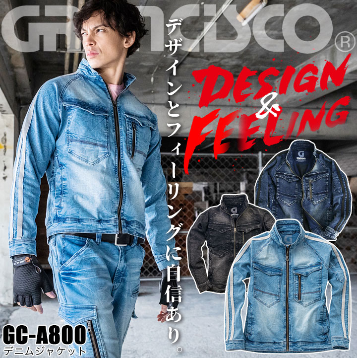 【5%OFFクーポン★11/1限定】【即日発送】グランシスコ 作業服 デニム ストレッチ スキニージャケット GC-A800【アップデート版】ストレッチ 作業着 作業服 オールシーズン タカヤ商事 A800シリーズ