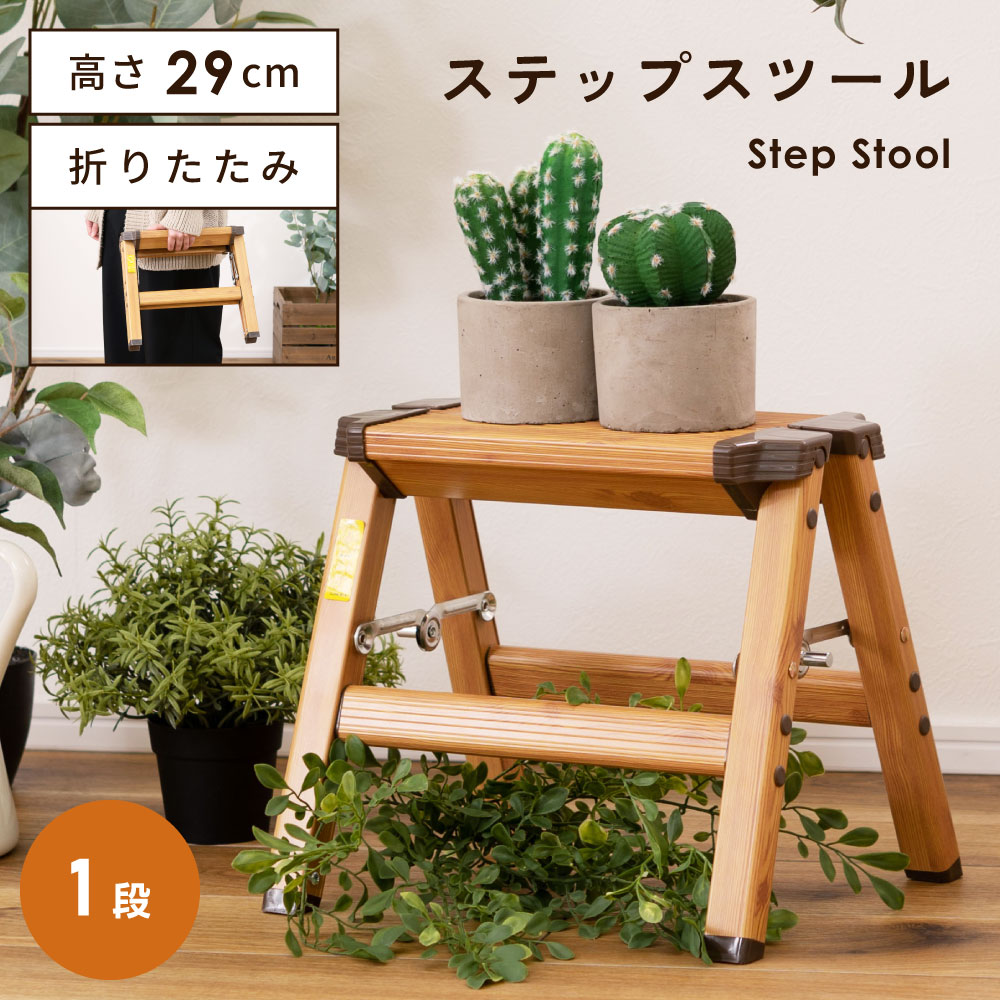 踏み台 高さ29cm 脚立 ステップ台 折りたたみ はしご 梯子 アルミ 木目調 おしゃれ スツール コンパクト スリム ミニ 耐荷重100kg 折り畳み 屋内 屋外 洗車 トイレ キッチン 台所 軽量 軽い 収納 高所 作業 滑り止め ブラウン