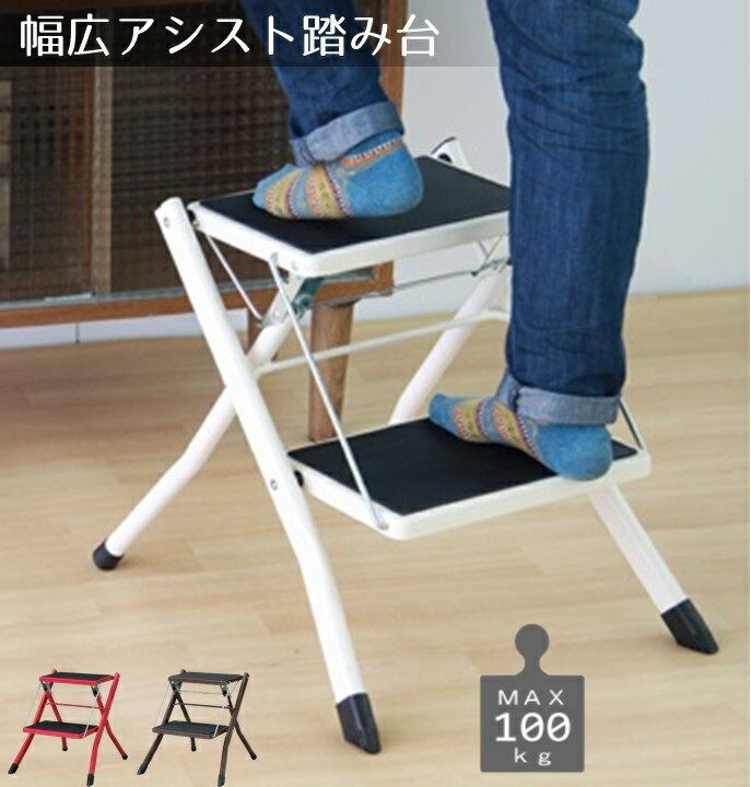 幅広 アシスト 踏み台 高さ43センチ 脚立 2段 踏台 コンパクト 折りたたみ ステップ台 昇降台 ステップ踏み台 おしゃれ 昇降 こども 便利グッズ 小物置き 折り畳み シンプル かわいい きゃたつ スツール 幅広い 使い道 高さ43cm AZPC-334