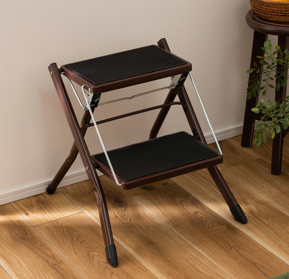 ステップチェア 2段 木目 ブラウン ( 踏み台 脚立 椅子 イス 木製 チェア ステップ 台 天然木 北欧 ナチュラル シンプル )