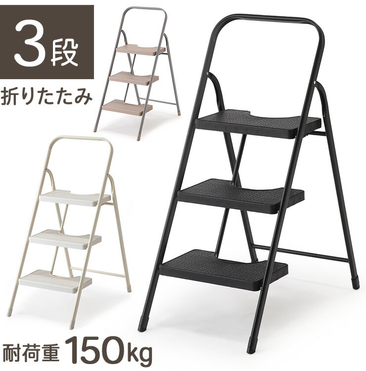 踏み台 ステップ 折りたたみ 台 3段 耐荷重 150kgふみだい ステップ台 シンプル おしゃれ 脚立 子供 トイレ スチール コンパクト インテリア 滑り止め チェア キッチン 収納 ホワイト ブラック ブラウン KC-7093NL1[2512SX]