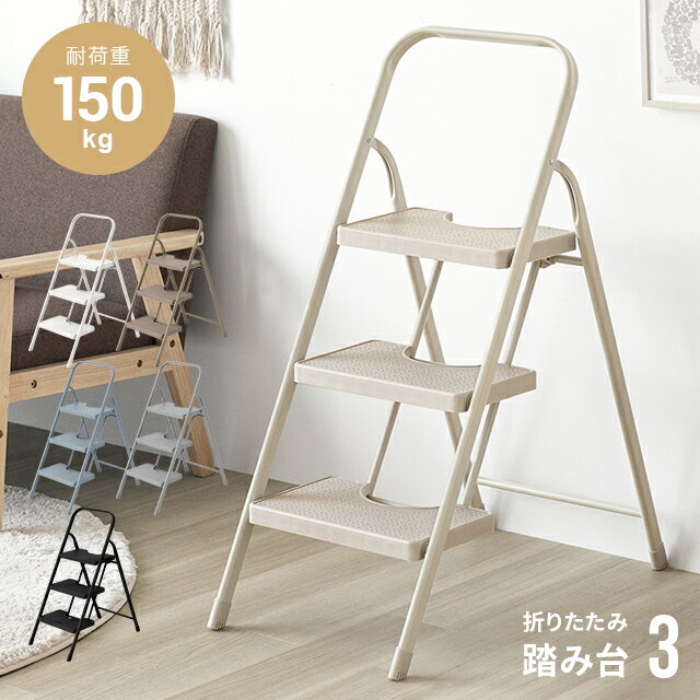 [本日もれなく全品P5倍] 踏み台 折りたたみ 3段 脚立 踏台 おしゃれ 軽量 ステップ台 ステップチェア 折りたたみステップ ステップスツール オフホワイト 大掃除 洗車台 はしご 梯子