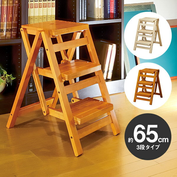 木製 折りたたみ 踏み台 約65cm 三段タイプ 3段 ステップチェア ステップ台 踏み台 脚立 木製 シンプル ナチュラル 子供 洗面台 キッチン[t]